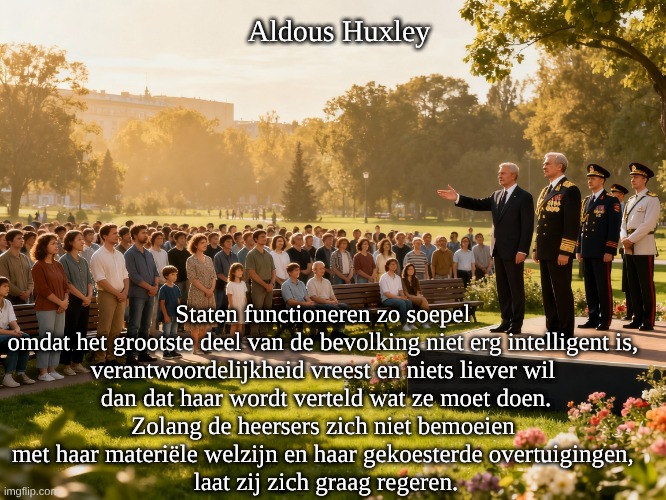 De perfecte dictatuur zou de schijn van democratie hebben, maar zou in feite een gevangenis zijn zonder muren waarin de gevangenen niet eens zouden dromen om te ontsnappen. Het zou in wezen een systeem van slavernij zijn, waarbij de slaven, door middel van consumptie en amusement, hun dienstbaarheid zouden waarderen.