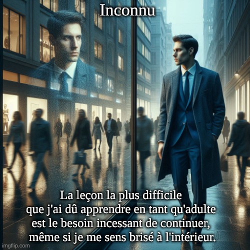 La leçon la plus difficile que j’ai dû apprendre en tant qu’adulte est le besoin incessant de continuer, même si je me sens brisé à l’intérieur.