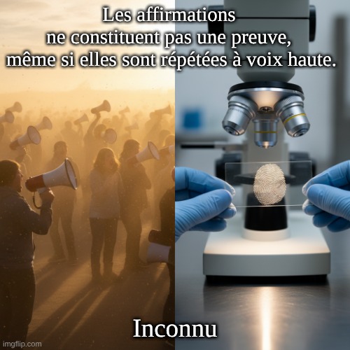 Les affirmations ne constituent pas une preuve, même si elles sont répétées à voix haute.