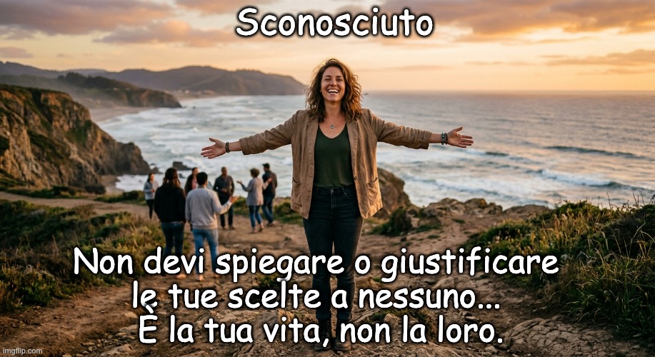 Immagine: Peter van Geest AI. Significato 🧠🌟: L’essenza dell’autodeterminazione. Questo detto risuona profondamente con le persone che cercano autenticità e autonomia. È un potente promemoria della libertà personale e della responsabilità per la propria felicità e per rivendicare la propria vita. Questi sono i messaggi chiave: Autonomia sulla propria vita: il messaggio fondamentale è che sei l’unico ad avere il controllo della tua vita. Le tue scelte, grandi e piccole, sono tue. Non essere responsabile (verso nessuno): sebbene a volte sia educato o pratico spiegare le tue scelte (ad esempio, al coniuge o al datore di lavoro), questa citazione afferma che non sei “mai” obbligato a difenderti o giustificarti davanti agli altri, soprattutto quando si tratta dei tuoi valori più profondi e del tuo percorso di vita. Proteggere la propria pace interiore: doversi spiegare costantemente può essere estenuante e portare a dubbi su se stessi. Questo detto ti incoraggia a conservare quell’energia e a fidarti del tuo giudizio. Accettazione del proprio percorso: riconosce che il proprio percorso è unico. Gli altri potrebbero non capire, e va bene così. È la “tua” vita da vivere, non la loro da approvare. Liberazione dalle aspettative esterne: ti aiuta a liberarti dalla pressione delle norme sociali o dalle aspettative di familiari e amici. 🌍 Origine e Autore: Un detto moderno. Questa particolare citazione non ha “nessun autore specifico conosciuto”. È una di quelle saggezze moderne emerse organicamente e diventate popolari, soprattutto nell’era di Internet. Un proverbio moderno: è un esempio di “saggezza di Internet” o un proverbio moderno. Viene spesso condiviso sui social media, nei blog e su siti Web stimolanti. Non è una fonte classica: non può essere fatta risalire a un famoso filosofo, scrittore o personaggio storico. Piuttosto, è una raccolta di idee sull’amor proprio e sull’empowerment che sono prevalenti nella cultura moderna. Variazioni: lo incontri spesso con formulazioni leggermente diverse, sia in olandese che in altre lingue (come l’inglese “Non devi spiegare o giustificare le tue scelte a nessuno… È la tua vita, non la loro”). 💡 Perché è così popolare: La popolarità di questo detto è dovuta al suo riconoscimento universale: Tutti riconoscono la pressione: quasi tutti hanno sentito la pressione di giustificare le proprie scelte di vita. Offre empowerment: dà alle persone una sensazione di forza e convalida. È semplice e diretto: il messaggio è chiaro e facile da ricordare. Insomma, anche se non possiamo individuarne l’origine esatta, la forza del messaggio è innegabile. È un promemoria senza tempo per rimanere fedele a te stesso. ✨