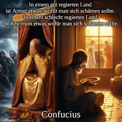 In einem gut regierten Land ist Armut etwas, wofür man sich schämen sollte. In einem schlecht regierten Land ist Reichtum etwas, wofür man sich schämen sollte.