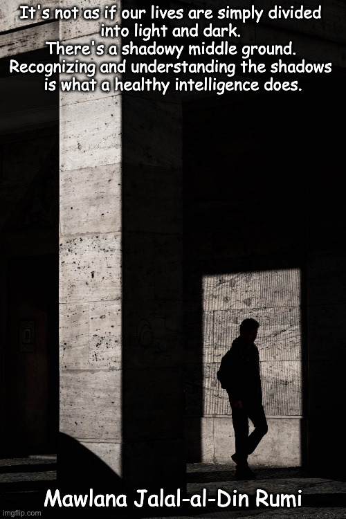 It’s not as if our lives are simply divided into light and dark. There’s a shadowy middle ground. Recognizing and understanding the shadows is what a healthy intelligence does.