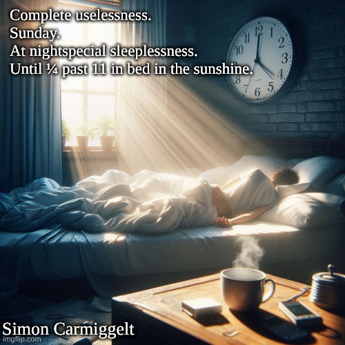 Complete uselessness. Sunday. At nightspecial sleeplessness. Until ¼ past 11 in bed in the sunshine.