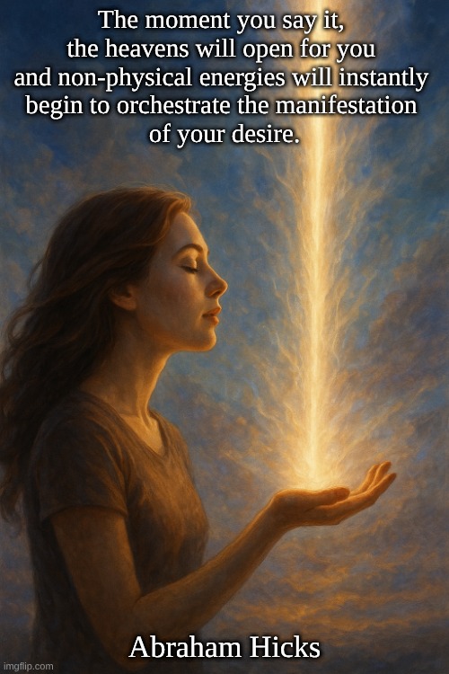 The moment you say it, the heavens will open for you and non-physical energies will instantly begin to orchestrate the manifestation of your desire.