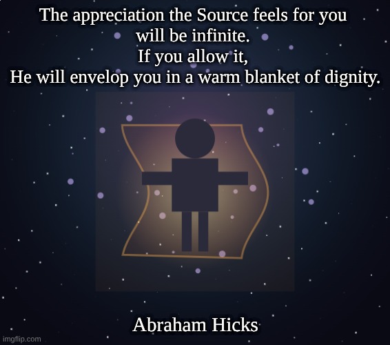 The appreciation the Source feels for you will be infinite. If you allow it, He will envelop you in a warm blanket of dignity.