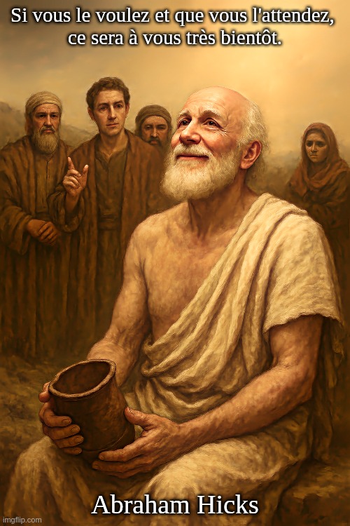 Fait référence à Esther Hicks, une auteure et conférencière américaine qui prétend canaliser un groupe d’entités spirituelles appelé « Abraham ». Avec son défunt mari Jerry Hicks, elle a développé les enseignements de la « loi de l’attraction » qui sont devenus populaires dans les cercles d’auto-assistance.