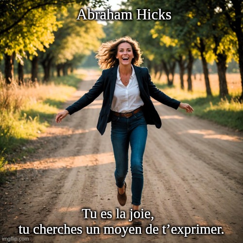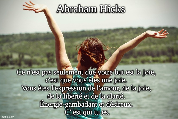 Ce n’est pas seulement que votre but est la joie, c’est que vous êtes une joie. Vous êtes l’expression de l’amour, de la joie, dela liberté et de la clarté. Énergie-gambadant et désireux. C’ est qui tu es.