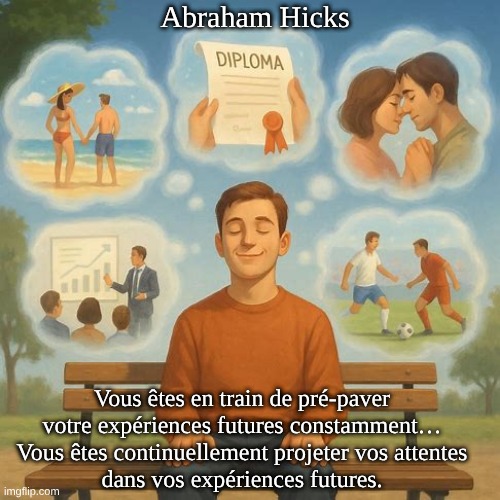 Vous êtes en train de pré-paver votre expériences futures constamment… Vous êtes continuellement projeter vos attentes dans vos expériences futures.