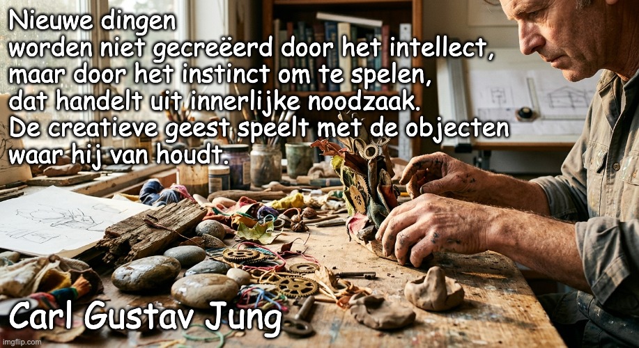 Jaar van uitgave: 1921. Locatie in het werk: Dit citaat bevindt zich in ‘Paragraaf 197’. In de Engelstalige standaardeditie van zijn verzamelde werken is dit te vinden in: ‘Collected Works of C.G. Jung, Vol. 6: Psychological Types’, para. 197. 🌱 Kortom: Voor Jung is ware creativiteit een synthese van een diepe, innerlijke (vaak onbewuste) noodzaak en een speelse, open houding ten opzichte van de wereld, waarbij het intellect pas later een rol speelt bij het vormgeven van wat de “speeldrift” heeft voortgebracht.