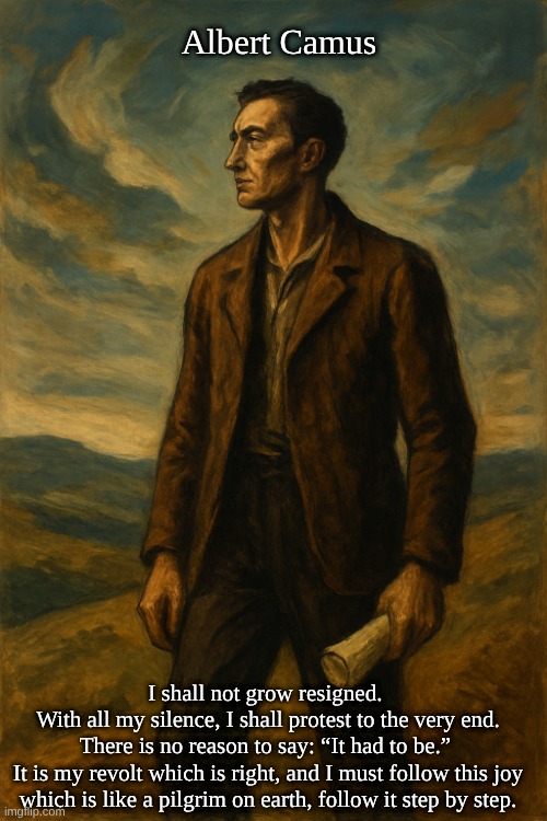 I shall not grow resigned. With all my silence, I shall protest to the very end. There is no reason to say: “It had to be.” It is my revolt which is right, and I must follow this joy which is like a pilgrim on earth, follow it step by step.
