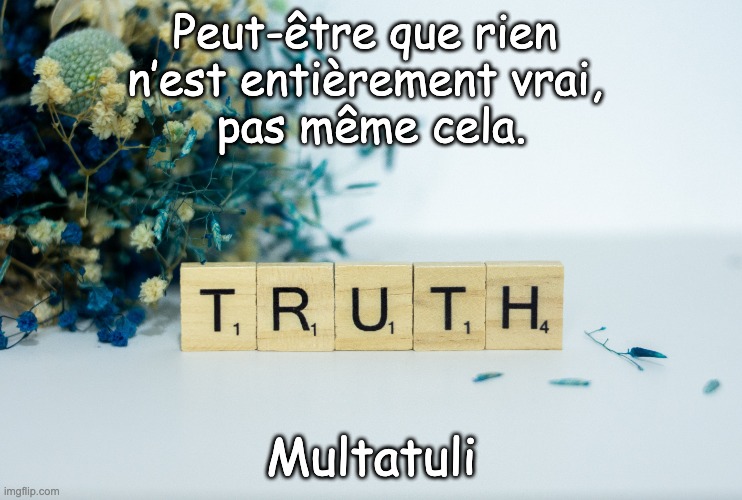 Auteur : Cette citation est souvent attribuée à l’écrivain et critique néerlandais Multatuli, pseudonyme d’Eduard Douwes Dekker. Contexte : Multatuli était une figure influente du XIXe siècle, connu pour sa critique de la politique coloniale néerlandaise et des inégalités sociales. Son ouvrage « Max Havelaar » est un classique qui aborde ces thèmes. À propos de Multatuli : Vie : Né en 1820 et mort en 1887, Multatuli était un fervent défenseur de la justice sociale.  Style : Son style d’écriture était souvent provocateur et stimulant, avec une forte emphase sur les questions éthiques et sociales. Conclusion : Cette déclaration invite à une réflexion sur ce que nous considérons comme vrai et sur la façon dont nos croyances peuvent évoluer. Elle illustre avec force la profondeur de la pensée de Multatuli et son influence sur la littérature et la société.