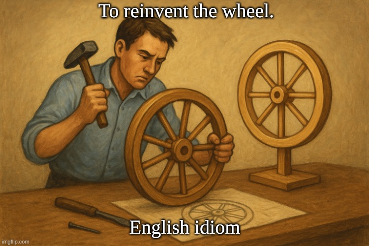 Image: Peter van Geest AI. Meaning: Someone wastes time and effort on something that has already been well invented or developed by others. Origin: The expression is taken from a metaphor: the wheel is one of the oldest and most important human inventions. It is not an old folk saying, but probably originated in the 19th century, mainly in business, technical and educational contexts adopted from English.