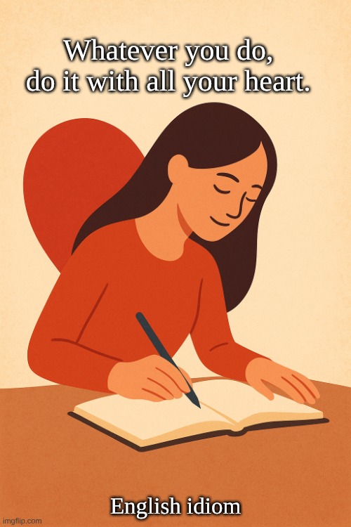 Image: Peter van Geest AI. Meaning: This saying emphasizes that someone does something with feeling, conviction, and passion. It’s the opposite of doing something “half-heartedly” or “dutifully.” Origin: The phrase comes from ancient religious language, both Latin and the Bible (Deuteronomy 6:5 and Matthew 22:37).