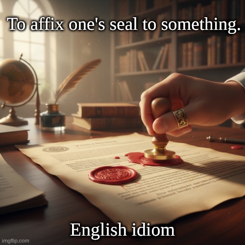 Image: Peter van Geest AI. Meaning: The expression refers to confirming or approving something, often in a formal context. The idea of a seal symbolises authority and legitimacy, such as the approval of documents or agreements. Origin: This expression stems from the tradition of using a seal (such as a wax seal) to authenticate documents. The use of seals dates back to ancient times and was a way of confirming the identity of the signatory. Author: There is no specific author associated with this expression, as it is a common saying used in English language. It belongs to the broader cultural and linguistic context of the English language and can occur in various documents and situations. Application: This expression can often be found in legal, business or administrative texts.