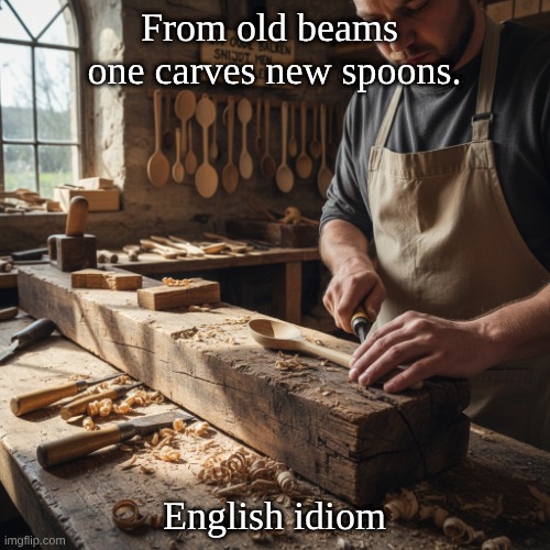 Image: Peter van Geest AI. Meaning:Core message: The expression means that you can make new and useful objects from old or used materials. It emphasizes the importance of reuse, creativity, and resourcefulness. Origin: This saying is original a Dutch proverb that originated in traditional craft practices, where wood and other materials were often reused to create new products. It reflects a broader cultural value present in many societies, namely the idea of sustainability and appreciating what you have. Author: The exact origin or author of this particular expression is difficult to trace, as it is folk wisdom passed down through time. Often, such sayings are not attributed to a single author but arise from the collective experiences and wisdom of the community. Conclusion: This saying is a beautiful example of how traditional wisdom can inspire us to be creative and sustainable with the resources we have. 🌳✨