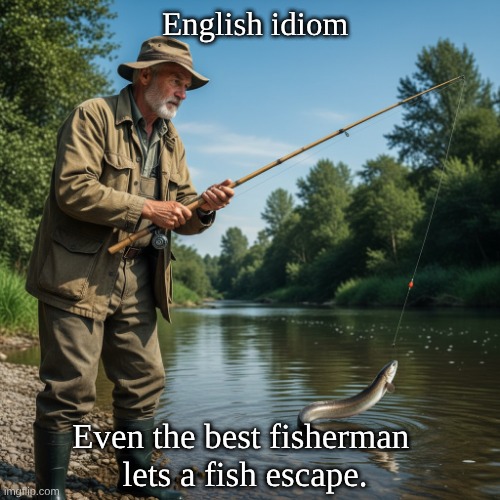 Image: Peter van Geest AI. Meaning: Interpretation: This saying means that even the most skilled or experienced people make mistakes or lose something from time to time. It reminds us that no one is perfect and that failure is a normal part of life. Origin: This saying comes from English culture and is a traditional expression often used in conversations about skill and coping with setbacks. The image of the fisherman and the eel symbolizes the challenges people face, regardless of their expertise. Author: There is no specific author of this saying, as it is folk wisdom that has been passed down through the years and has become engrained in the English language. Extra: These types of sayings are often found in literature and everyday conversation, and they contribute to the cultural identity of a language region. 🌊🎣