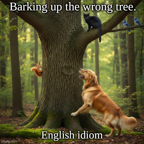 Image: Peter van Geest AI. Meaning: This saying means that someone is mistaken about the cause of a problem or is making the wrong assumptions about a situation. It refers to the idea that someone is focusing on something that is not relevant or correct, often in the context of looking for a solution or making an accusation. Origin: The expression originates from the hunting world, where dogs sometimes bark at a tree where they think their prey is, when in fact the prey is somewhere else. The image of someone barking up the wrong tree captures the essence of the saying. Author: There is no specific author for this expression, as it is an idiomatic expression that has developed in the English language over time. It was first documented in the United States in the 19th century, but its exact origin is difficult to trace. Summary:“Barking up the wrong tree” is a figurative expression that refers to making incorrect assumptions or focusing on the wrong thing. It is a common expression in English and has roots in hunting practices of the past.