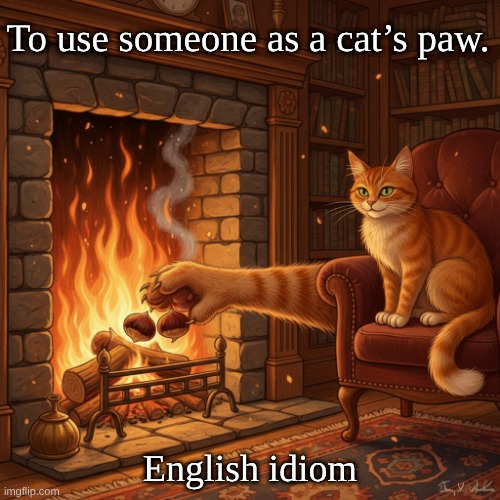 Image: Peter van Geest AI. Meaning 🎯: – To manipulate someone into doing a risky, dirty, or unpleasant task so that another person can benefit. – The person being used is the “cat’s paw” (a dupe, stooge, pawn). 🔥🐱 . Origin 📜: – The idiom comes from the fable of the monkey and the cat, where a monkey gets a cat to pull roasted chestnuts from a fire; the cat burns its paw while the monkey eats the chestnuts. – Most famously told by Jean de La Fontaine as “Le Singe et le Chat” (Fables, Book IX, 1679), though versions existed in the medieval Aesopic tradition earlier. – Entered English figurative use by the mid-17th century (OED cites 1657). ⏳ Author/Attribution ✍️: – No single “author” of the idiom. It’s derived from a traditional fable. – Literary popularizer: Jean de La Fontaine. The story is often loosely linked to Aesop, but this specific tale is not in the classical Greek Aesop corpus; it circulated in later medieval “Aesopic” collections. Usage Examples 🗣️: – “They used the junior analyst as a cat’s paw to deliver the bad news.” – “Don’t be their cat’s paw in this office politics game.” Related Expressions 🔗: – “To pull someone’s chestnuts out of the fire” (same fable). – Dupe, stooge, pawn, tool. Note 🚩: – Not to be confused with “cat’s-paw” in sailing/meteorology, which refers to small patches of ripples caused by a light breeze on water. 🌬️🌊