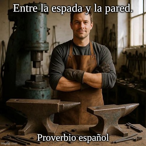 Imagen: Peter van Geest AI. Significado: Hay que elegir entre dos opciones igualmente poco atractivas o desastrosas: elijas lo que elijas, será malo. Indica un dilema sin buen desenlace.