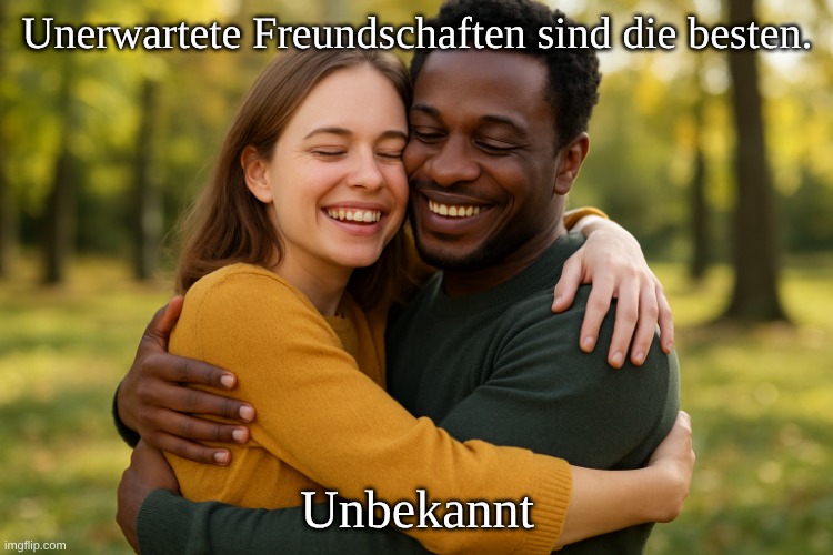 Bild: Peter van Geest AI. Bedeutung: Freundschaften, die spontan entstehen, können manchmal wertvoller sein als Freundschaften, die man erwartet oder bewusst aufbaut. Sie sind oft aufrichtig, überraschend und erfrischend. Da man sie nicht kommen sieht, entstehen sie nicht auf der Grundlage von Erwartungen, sondern durch echte Chemie, Authentizität und unerwartete Verbundenheit. Herkunft: Es wird keinem bestimmten Autor zugeschrieben und kommt vor allem als modernes Sprichwort vor, das in sozialen Medien, Blogs und populärer Literatur weit verbreitet ist. Es fungiert also eher als zeitgenössisches Sprichwort denn als Zitat eines bekannten Schriftstellers oder Philosophen.