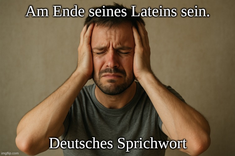 Bild: Peter van Geest AI. Bedeutung: Nicht mehr wissen, was man tun soll; keinen Ausweg mehr sehen; erschöpft sein (körperlich, geistig oder ideenmäßig). Herkunft: Der Ausdruck stammt aus dem mittelalterlichen Lateinunterricht. In der Zeit, als Latein die Sprache der Wissenschaft und Bildung war (vom Mittelalter bis ins 18. Jahrhundert), bedeutete es wörtlich: Jemand ist so weit gekommen, dass er nichts mehr auf Latein sagen kann – er kennt also keine Worte mehr, sein Wissen ist erschöpft. Später wurde es im übertragenen Sinne verwendet: Jemand hat keine Mittel oder Ideen mehr – er ist „am Ende seines Lateins”.