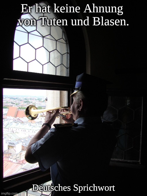 Foto: Dariusz Staniszewski. Bedeutung: Er weiß nichts, er ist ein Dummkopf. Herkunft: Toeten und blazen bedeuten beide: auf einem Horn blasen. Herkunft: Der Ausdruck hat seinen Ursprung in der Arbeit des Nachtwächters.