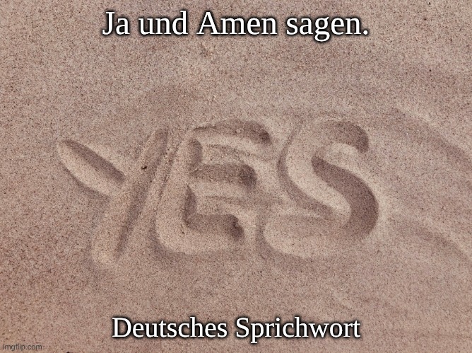 Foto: justlive. Bedeutung: Alles ohne Widerspruch gutheißen, bedingungslos zustimmen, alles, was jemand sagt oder entscheidet, akzeptieren. Ursprung: Der Ausdruck stammt aus der christlichen Liturgie. Im Gottesdienst bekräftigt die Gemeinde nach dem Gebet oder Glaubensbekenntnis mit „Amen“ – einem hebräischen Wort, das so viel bedeutet wie: so sei es, so sei es, es ist wahr. Das „Ja“ drückt zustimmende Bejahung aus. So entstand die Redewendung „Ja und Amen“ als Bild für uneingeschränkte Zustimmung. Diese Bildsprache findet sich in der niederländischen und deutschen Sprache bereits früh (ab dem 17. Jahrhundert) in religiösen und moralischen Texten. Es gibt keinen einzelnen Urheber: Es ist ein traditionelles Sprichwort, das aus einem religiösen Kontext in die Alltagssprache übernommen wurde.