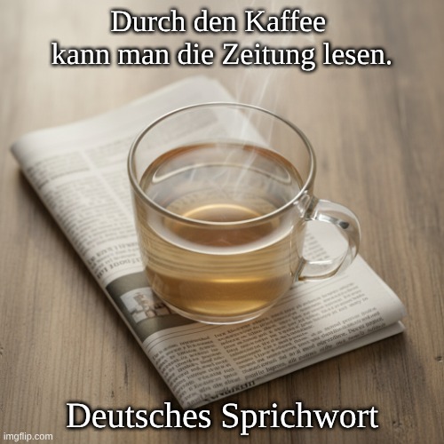 Durch den Kaffee kann man die Zeitung lesen.