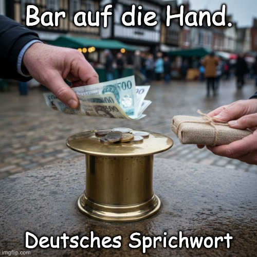 Bild: Peter van Geest AI. Bedeutung:“Bar auf die Hand” bedeutet, dass jemand einen Betrag in bar (also in Geldscheinen oder Münzen) direkt und ohne Umwege erhält. Es wird oft im Kontext von Zahlungen oder finanziellen Transaktionen verwendet, wo keine Rechnung oder andere Form der Dokumentation notwendig ist. Herkunft: Der Ausdruck stammt aus dem deutschen Sprachraum und bezieht sich auf die Praxis, Geld direkt in die Hand zu geben, ohne es auf ein Konto zu überweisen oder eine Quittung auszustellen. Diese Redewendung ist in der Umgangssprache verbreitet und wird häufig in der Gastronomie oder im Einzelhandel verwendet. Autor: Es gibt keinen spezifischen Autor für diesen Ausdruck, da es sich um eine gängige Redewendung handelt, die im deutschen Sprachgebrauch fest verankert ist. Der Ursprung ist eher kulturell und sprachlich als literarisch. Beispiele: In der Gastronomie: „Ich zahle die Rechnung bar auf die Hand.“ Im Handel: „Der Verkäufer bot mir die Ware bar auf die Hand an.“ Fazit: “Bar auf die Hand” ist ein praktischer Ausdruck, der die direkte und unkomplizierte Zahlungsweise beschreibt. 💵