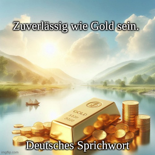 Bild: Peter van Geest AI. Bedeutung: Dieses Sprichwort betont die Zuverlässigkeit und den Wert einer Person oder einer Sache, vergleichbar mit der Art und Weise, wie Gold als Symbol für hohen Wert und Integrität angesehen wird.