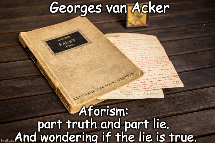 Photo: Metsik Garden. Meaning 🤔: The aphorism “part truth and part lie. And wondering if the lie is true” plays with the nature of truth, perception, and deception. “part truth and part lie”: This suggests that aphorisms (and perhaps many statements or human concepts) are rarely purely black and white. There is often a kernel of truth in them, mixed with an element that may be exaggerated, misleading, or simply incorrect. It is the blending of these two elements that makes the aphorism complex. “And wondering if the lie is true”: This is the most intriguing and philosophical component. It challenges us to look beyond the surface. Why should we wonder if a lie is true? Subtle truth in the lie: Sometimes a “lie” (a distortion, an exaggeration, a metaphor) can expose a deeper, hard-to-express truth that a literal representation could not. Perception versus reality: It can also refer to how easily we can be misled, or how our own biases and desires make us believe in the “truth” of something that is factually incorrect. The nature of aphorisms: Aphorisms are often paradoxical and challenging. They make you think, and this specific aphorism does so by forcing the reader to examine the boundaries of truth and falsehood within the statement itself. In short, the aphorism invites critical thinking about the information we receive and the tendency to seek or find a form of truth even in falsehoods. Origin and Author 🕵️♀️:Georges van Acker (1918-1996), a Flemish aphorist and philosopher, known for his sharp and often paradoxical statements. Indeed, he wrote many works that play with the concepts of truth, illusion, and the human condition. His aphorisms are often imbued with deep psychological and philosophical observation. Attribution: This specific aphorism is attributed to Georges van Acker. It fits his style and themes perfectly. He had a penchant for dissecting complex ideas into concise, striking sentences. This aphorism is a beautiful example of his work and illustrates how he challenged the reader to think more deeply.