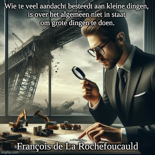 Wie te veel aandacht besteedt aan kleine dingen, is over het algemeen niet in staat om grote dingen te doen.