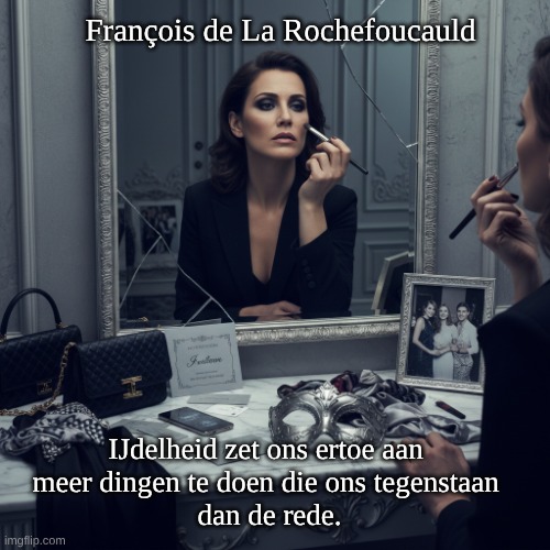 Afbeelding: Peter van Geest AI. Betekenis:Interpretatie: Dit citaat reflecteert op de menselijke natuur en suggereert dat trots en ijdelheid ons vaak aanzetten tot activiteiten die we eigenlijk niet leuk vinden, zelfs meer dan rationele overwegingen ons zouden aanmoedigen. Oorsprong:Context: Het citaat nodigt uit tot nadenken over de invloed van persoonlijke trots en sociale verwachtingen op ons gedrag. Filosofische implicaties: Het wijst op de innerlijke strijd tussen wat we willen en wat we daadwerkelijk doen, vaak gedreven door externe druk of onze eigen ego. Publicatie: Dit citaat is afkomstig uit het werk van François de La Rochefoucauld, en het is te vinden in zijn boek: “Réflexions ou Sentences et Maximes Morales” (1665). Inhoud: Het boek bevat een verzameling maxims en reflecties over de menselijke natuur, sociale gedragingen en morele kwesties. La Rochefoucauld’s maxims zijn beroemd vanwege hun scherpzinnigheid en realisme, en ze blijven relevant in de moderne filosofie en literatuur.