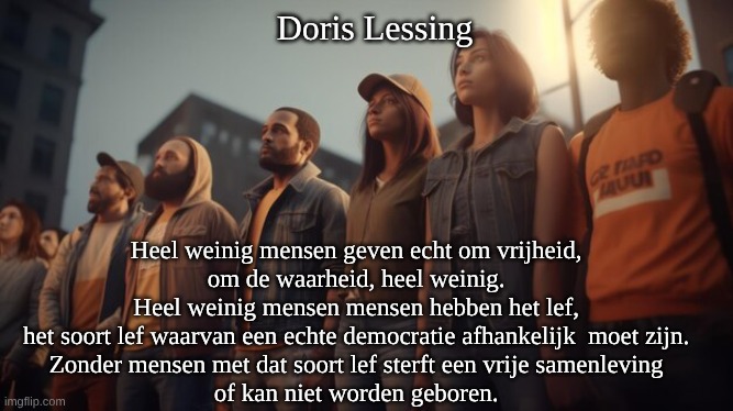Heel weinig mensen geven echt om vrijheid, om de waarheid, heel weinig. Heel weinig mensen mensen hebben het lef, het soort lef waarvan een echte democratie afhankelijk moet zijn. Zonder mensen met dat soort lef sterft een vrije samenleving of kan niet worden geboren.
