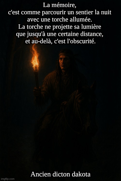 La mémoire, c’est comme parcourir un sentier la nuit avec une torche allumée. La torche ne projette sa lumière que jusqu’à une certaine distance, et au-delà, c’est l’obscurité.