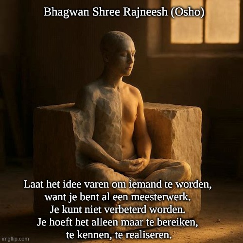 Laat het idee varen om iemand te worden, want je bent al een meesterwerk. Je kunt niet verbeterd worden. Je hoeft het alleen maar te bereiken, te kennen, te realiseren.