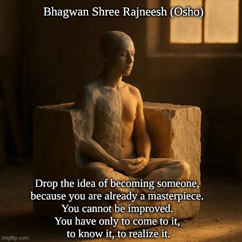Drop the idea of becoming someone, because you are already a masterpiece. You cannot be improved. You have only to come to it, to know it, to realize it.