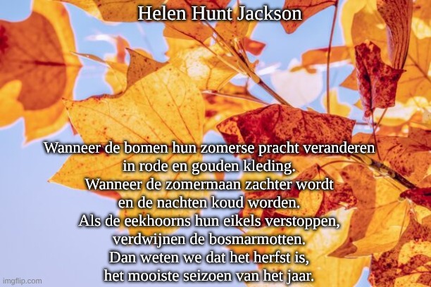 Wanneer de bomen hun zomerse pracht veranderen in rode en gouden kleding. Wanneer de zomermaan zachter wordt en de nachten koud worden. Als de eekhoorns hun eikels verstoppen, verdwijnen de bosmarmotten. Dan weten we dat het herfst is, het mooiste seizoen van het jaar.