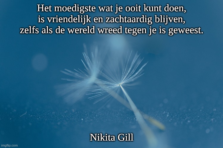 Het moedigste wat je ooit kunt doen, is vriendelijk en zachtaardig blijven, zelfs als de wereld wreed tegen je is geweest.