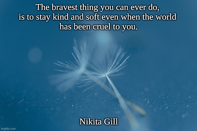 The bravest thing you can ever do, is to stay kind and soft even when the world has been cruel to you.