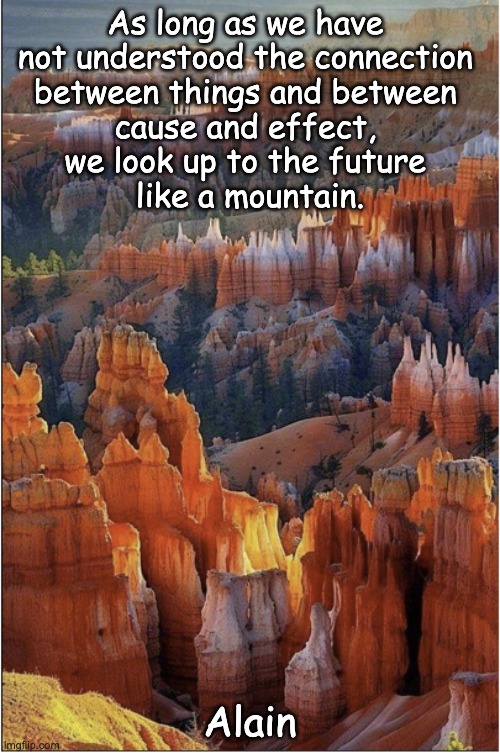 As long as we have not understood the connection between things and between cause and effect, we look up to the future like a mountain.