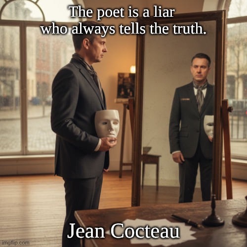 “to lie” = the use of fiction, imagination, metaphor, exaggeration, and symbolism. “The truth” = a deeper, existential, or emotional insight that is not literally, but strikingly true. Core idea: Poetry invents forms to reveal a truth that is difficult to grasp with mere factual language. Origin: Classical roots: In the Poetics, Aristotle argues that poetry is “more philosophical” than history because it touches upon the universal and essential rather than merely the particular. This idea underlies this paradox. Modern formulation: The well-known version is closely related to (and often reduced in Dutch to) Jean Cocteau’s statement: “Le poète est un menteur qui dit toujours la vérité.” Loosely translated: “The poet is a liar who always tells the truth.” In Dutch, this became succinctly: “Poets lie the truth.”