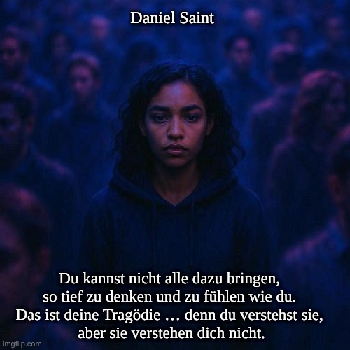 Du kannst nicht alle dazu bringen, so tief zu denken und zu fühlen wie du. Das ist deine Tragödie … denn du verstehst sie, aber sie verstehen dich nicht.