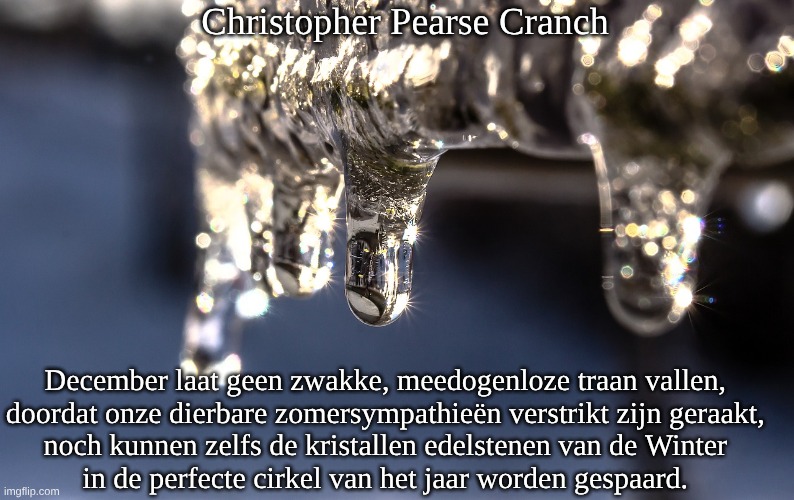 December laat geen zwakke, meedogenloze traan vallen, doordat onze dierbare zomersympathieën verstrikt zijn geraakt, noch kunnen zelfs de kristallen edelstenen van de Winter in de perfecte cirkel van het jaar worden gespaard.