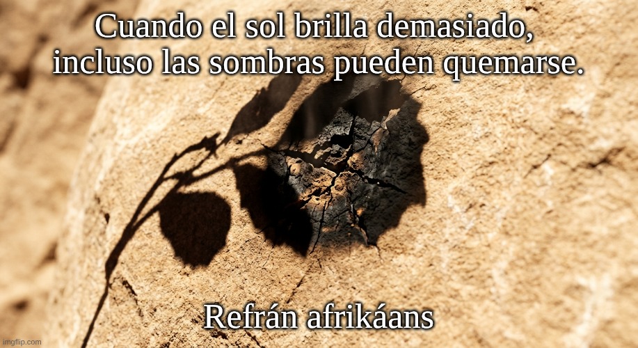 Imagen: Peter van Geest AI. Significado 📖: Este es un dicho muy poderoso y evocador. Gira en torno a la idea de ‘extrema intensidad’ y sus consecuencias. Las principales interpretaciones son:No hay refugio seguro: La sombra normalmente representa protección, frescor y seguridad contra el calor del sol. Si hace “tanto calor” que incluso la sombra “quema”, significa que “no hay absolutamente ninguna protección en ninguna parte”. La situación es abrumadora y destructiva. Destrucción total: Sugiere una situación en la que incluso las cosas que son inherentemente protectoras o secundarias (la sombra sólo existe ‘gracias’ al objeto y al sol) se ven afectadas. Indica una fuerza destructiva, ya sea calor literal o pasión, ira o poder figurados. La desventaja de los extremos: nos recuerda que demasiado de algo bueno (el sol, a menudo asociado con la vida y el crecimiento) puede convertirse en algo destructivo. En una frase: Describe una situación tan extrema o intensa que incluso los refugios o mecanismos de protección normales ya no funcionan. 🌍 Autor: No hay un autor específico, como la mayoría de los refranes y la sabiduría popular, este dicho “ningún autor individual conocido” tiene. Surgió orgánicamente dentro de una cultura y se transmitió oralmente. 🌍 Origen africano (Muy probable): Muchas fuentes y colecciones de refranes globales atribuyen este dicho a un origen africano. La imagen de un sol tan intenso que lo amenaza todo, incluidas las sombras, encaja perfectamente con la realidad geográfica y climática de muchas partes del continente africano. El sol es allí una fuerza dominante, dadora de vida, pero a veces despiadada. Los proverbios africanos son conocidos por sus vívidas metáforas basadas en la naturaleza para expresar profundas verdades humanas. Este dicho encaja perfectamente en esa tradición. Conclusión sobre el origen: aunque a menudo no se menciona el pueblo o la región exactos, hay un fuerte consenso en que se trata de un “proverbio tradicional africano”.