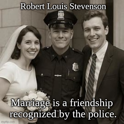Image: Peter van Geest AI. Meaning: The quote humorously emphasises that marriage is often seen as a legal institution rather than being based purely on romantic or emotional connections.