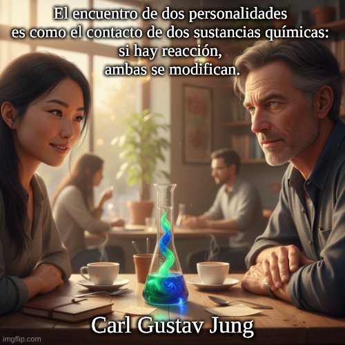 Imagen: Peter van Geest AI. Significado: Metáfora química ⚗️: Así como dos sustancias pueden reaccionar al contacto y ambas cambian, dos personas se influyen mutuamente cuando hay verdadera química. Reciprocidad 🔁: El cambio no es unilateral; ambas personas experimentan un cambio: de perspectiva, sentimientos, creencias o comportamiento. Condición: “si hay una reacción” ✅: No todo encuentro es transformador; solo cuando surge una verdadera interacción, resonancia o tensión, se produce el cambio. Neutral/ambivalente ⚖️: La transformación puede ser positiva (crecimiento, comprensión) o desafiante (conflicto, confrontación), pero siempre es formativa. Origen: Atribuido a: C.G. Jung, a menudo citado en inglés como “El encuentro de dos personalidades es como el contacto de dos sustancias químicas; si hay alguna reacción, ambas se transforman”. Origen probable 🗂️: A menudo vinculado a “El hombre moderno en busca de un alma” (1933) o a ensayos en un contexto junguiano.La cita exacta de una fuente primaria no suele aparecer de forma inequívoca en la literatura y en las citas en línea; se trata de una idea central junguiana que encapsula su pensamiento sobre las relaciones, la transferencia/contratransferencia y el simbolismo alquímico.  👤 Sobre el autor: Carl Gustav Jung: psiquiatra suizo, fundador de la psicología analítica. Ideas clave: Inconsciente colectivo, arquetipos, el camino de la individuación, sincronicidad, simbolismo y la alquimia como lenguaje psicológico. 🧭 Aplicación y contexto: Psicoterapia 🛋️: Se refiere a la influencia mutua entre terapeuta y cliente (transferencia/contratransferencia) en la que ambos aprenden y cambian. Relaciones ❤️: En la amistad, el amor o la colaboración, las personas se transforman mutuamente a través de encuentros genuinos, no a través del contacto superficial. Equipo / organización 🤝: La tensión creativa o “química” puede moldear permanentemente culturas e individuos. 🔎 Matices y conceptos erróneos: No todo contacto cambia: La transformación solo ocurre a través de la participación genuina, el conflicto, la resonancia o la vulnerabilidad. Sin exclusividad romántica: Esto aplica por igual a interacciones profesionales o conflictivas. Sin “metáfora de poder”: Enfatiza la reciprocidad, no el dominio ni la influencia unilateral. 📚 Breves sugerencias sobre la fuente: C.G. Jung – El hombre moderno en busca del alma (1933) [atribución frecuentemente citada]. Ensayos de Jung sobre la transferencia y la alquimia para un contexto conceptual.