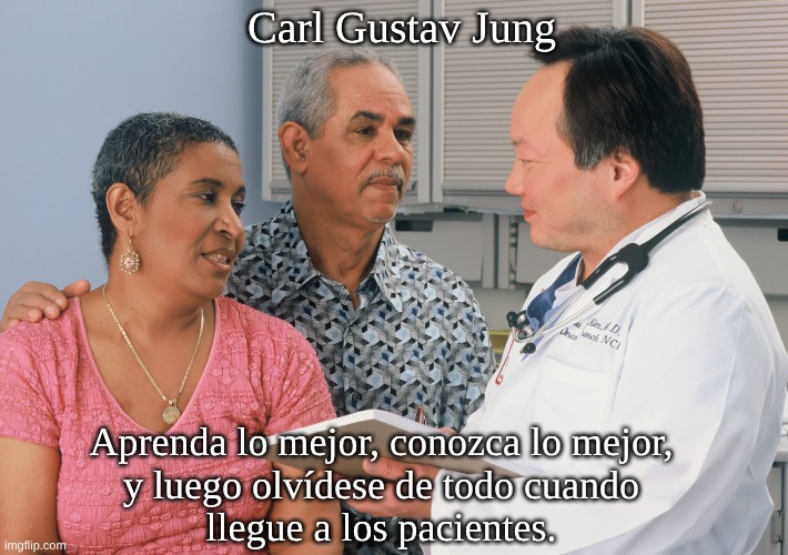 Usar: «A menudo atribuido a C. G. Jung; fuente precisa desconocida/disputada». O parafrasear: «En el espíritu de Jung: aprende tus teorías a fondo, pero déjalas entrar en contacto con el paciente único». Origen y variaciones 🔎:  Origen probable: Tradiciones de psicoterapia y educación médica que citan/parafrasean a Jung para enfatizar la importancia de la presencia clínica. Pensamientos junguianos cercanos y auténticos: Jung escribe repetidamente que el caso individual y el encuentro en vivo son la guía y que la teoría es una herramienta. Esto es consistente, aunque la frase exacta es difícil de rastrear. Tradiciones comparables (no junguianas): William Osler (medicina): énfasis en el aprendizaje a pie de cama y el paciente único. Carl Rogers (psicoterapia): La experiencia y el enfoque centrado en la persona por encima de la doctrina. Conclusión 🎯: Probablemente no se trate de una cita directa de Jung, sino de una impactante paráfrasis de una idea que encaja bien con su enfoque: dominar la teoría, pero en el encuentro con el paciente, priorizar la realidad vital de esa persona.
