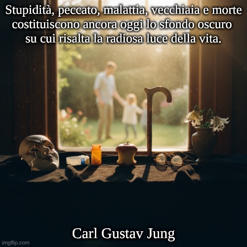 Stupidità, peccato, malattia, vecchiaia e morte costituiscono ancora oggi lo sfondo oscuro su cui risalta la radiosa luce della vita.