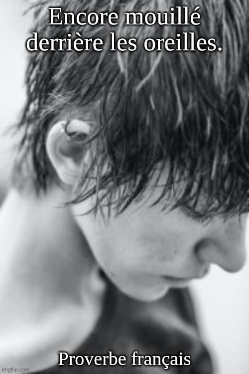 Photo: Engin Akyurt. Signification : Très jeune et sans émotion, littéralement « tout juste né ». Origine :L’image provient d’un nouveau-né dont le liquide amniotique (ou vernix blanc) derrière les oreilles n’est pas encore sec – une zone qui, comme les aisselles et l’aine, reste humide un certain temps. Une référence néerlandaise remonte à 1612 : l’écrivain amstellodamois Gerbrand Bredero fait dire à un personnage de sa comédie : « Tu es à peine sec derrière les oreilles, et tu les laisses tricher si jeune ? »